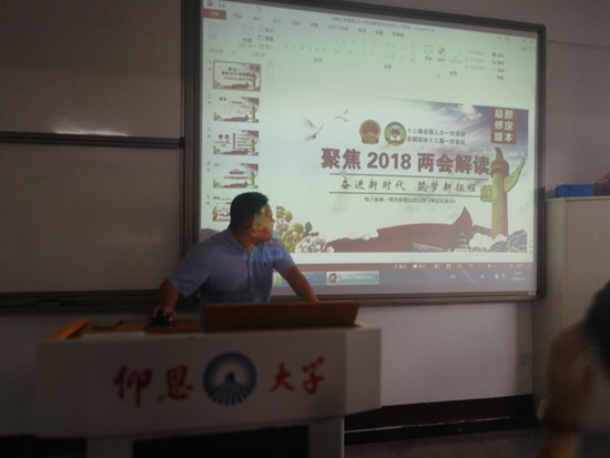 2018年刚刚闭幕的全国两会吹响了奋进新征程的号角,学习贯彻好全国两会精神,是一项重要政治任务。2018年5月14日下午,电子系学生第一党支部召开全体党员大会,深入学习两会精神。