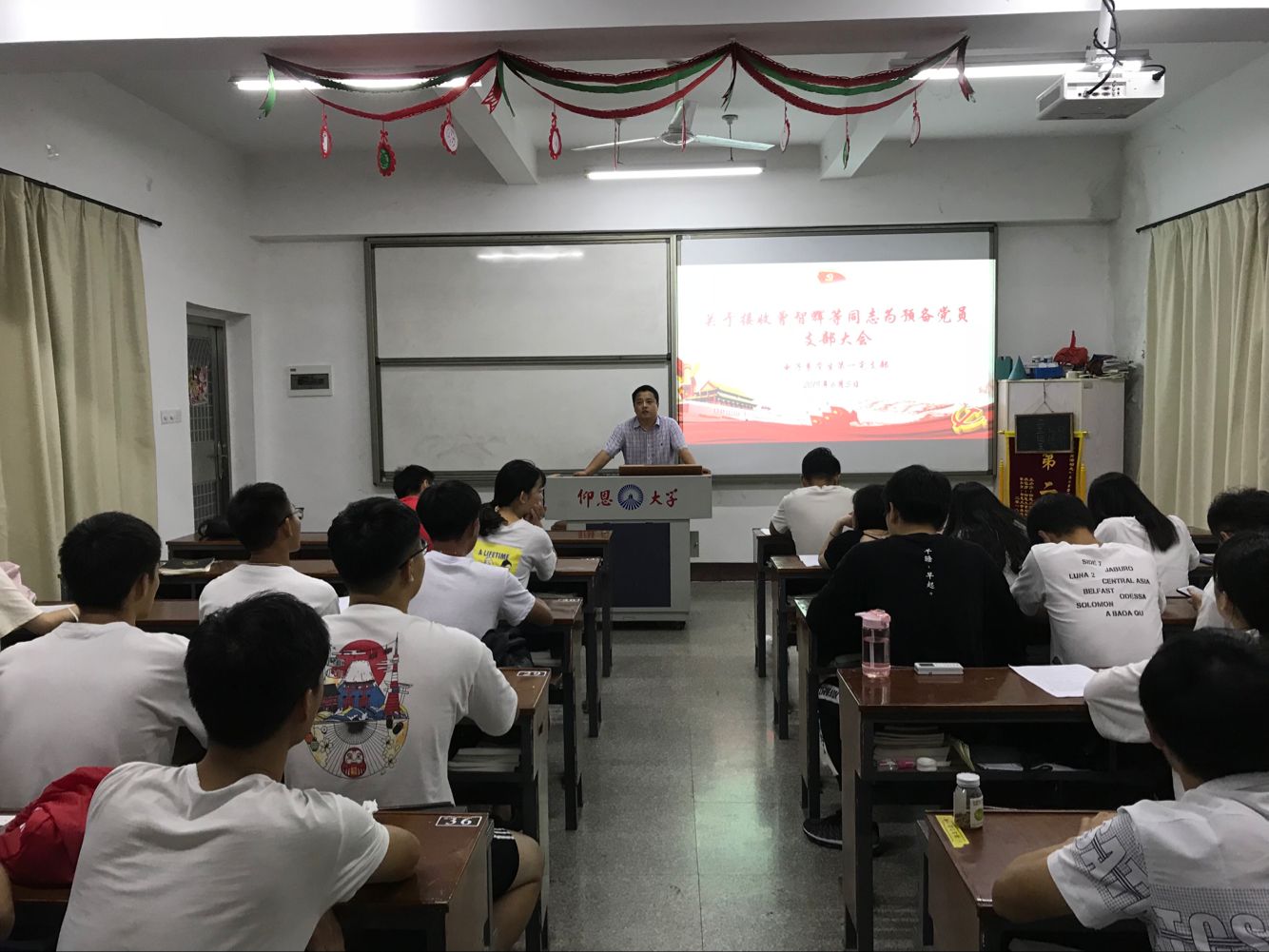 发展对象宣誓,他们高亢激昂,声音久久回荡在教室里,真正展现出了对党的崇高敬意。大会结束之际老师对发展党员给予希望和要求,希望他们随时与党组织保持一致,为同学服务,做学生表率,加强自我要求。