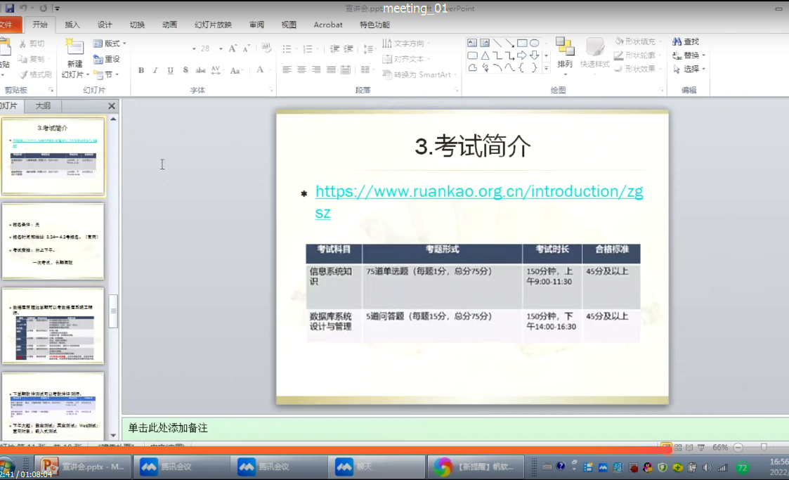 在本次会议上,王琴老师从三个方面向学生传达了本次宣读会的内容。第一,涉及开展本次宣讲会目的、如何备考、相关证书考试介绍等方面,动员学生在校期间结合自己的能力和职业规划选取相关证书进行考试,为就业打下坚实基础。第二,重点介绍了与本专业密切相关的国家软考证书、帆软的证书考试安排、考核内容、备考策略。第三,进行自由答疑环节。对考试时间到考试作用、考试准备各个方面进行清晰的解答。