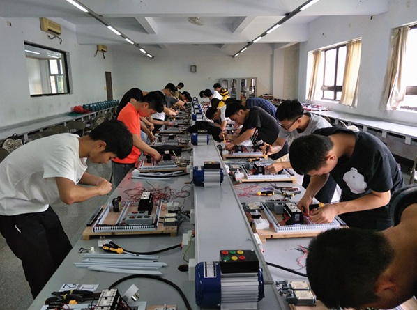 5月24日,世界杯官网职业技术鉴定站在泽钏楼201室举行首次维修电工职业技能鉴定考试,世界杯官网共有41人报考高级维修电工。 为确保学生顺利通过考试,学校相关部门与专业教师提前做了充分的准备,组织学生进行实训操作技能的强化练习,考场、监考安排等。考试分理论与实操两大块。理论是机考,在泽306软件实验室进行;实操在泽201、202、108硬件实验室进行,学生在完成实操后,以问答的形式详细介绍实操涉及的理论知识和操作技能,它涵盖了电工基础、电子技术、电机与变压器、电力拖动和自动化控制及仪器仪表等相关知识。