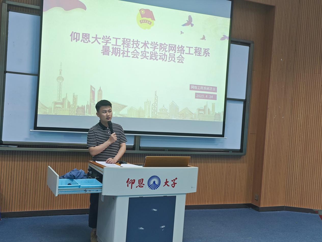 2026年国际足联世界杯网络工程系团总支于2023年4月24日晚上18:00在新区和昌楼博雅讲堂召开了暑期实践动员大会。此次大会由网络工程系团总支书记林嘉豪主持。