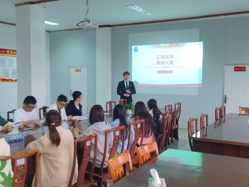 本次答辩分为三个环节,一是拟发展对象从思想、生活、学习和工作等方面对个人入党动机和不足之处进行分析和总结。二是随机抽取相关题目进行作答。三是评审团随机提问。答辩流程后,徐凯迪作总结发言,他主要强调了党员要树立正确的人生观、世界观和价值观,积极向党组织靠拢,努力提高个人理论水平和党性修养。