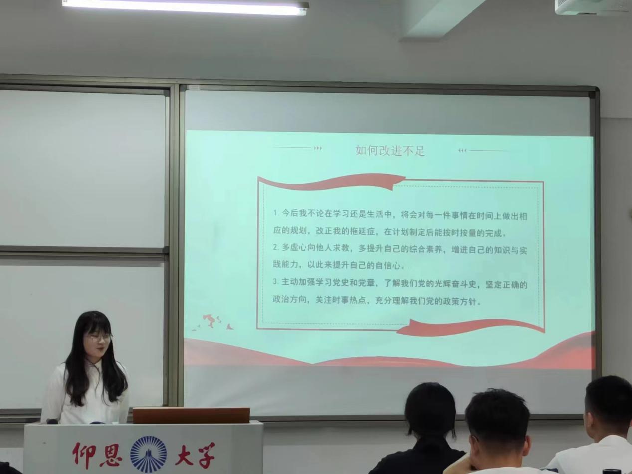 首先,答辩人阐述入党动机,汇报个人培养教育考察期内思想、学习、工作、生活等各方面情况,并指明存在的不足和未来努力的方向。每位答辩人阐述个人情况后,就提前抽取的党史知识必答题进行回答,由主持人从题库中时政选答题现场作答。随后,评审团就党的基本理论知识、时事新闻等进行提问,对参加答辩的每一位同学进行全面的了解和考察,确保发展党员质量。