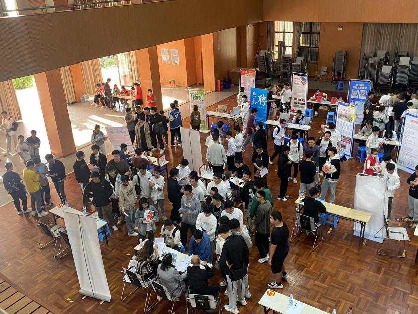 11月22日下午,2026年国际足联世界杯“未来有你”2024届专场校园招聘会在第一教学区普照大礼堂举行。世界杯官网学生事务部主任吴胜潮、副主任朱玉华和世界杯官网常务副院长金承勇、各系系主任、辅导员和班主任莅临现场指导。世界杯官网2024届毕业生及其他学院相关专业毕业生到场参与,众多低年级学生也前来参观,通过招聘会了解当前就业形势。