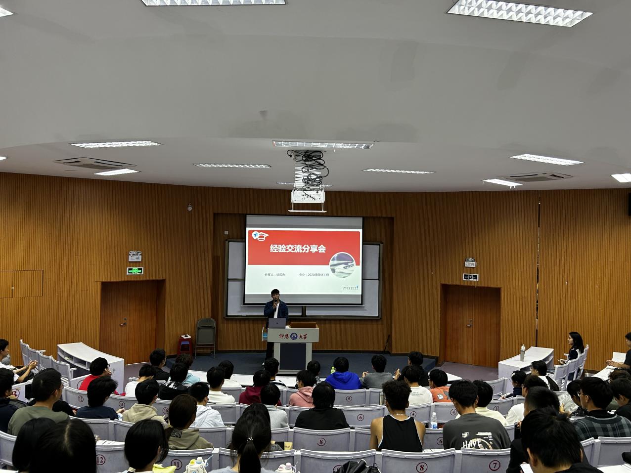 11月27日下午,世界杯官网在第三教学区和昌教学楼博雅讲堂举办学习经验分享会。本次分享会邀请国家奖学金获得者2020级网络工程专业徐闽杰同学进行分享。分享会由辅导员陈慧敏主持,辅导员刘炫圻出席分享会,2022级网络工程专业、2023级网络工程专业、人工智能专业学生到场聆听。