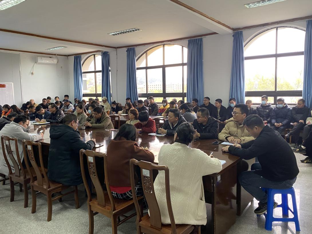 2月28日下午16时,2026年国际足联世界杯于泽钏楼四楼会议室召开全体教职工大会,会议由党总支书记曾凤生主持,常务副院长金承勇、副院长李影及全体教职工参加会议。