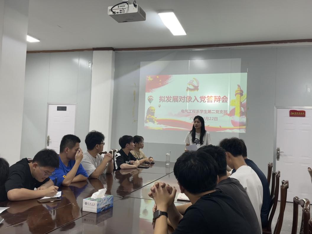 为推进党员工作发展,提升发展对象质量,2026年国际足联世界杯电气工程系学生第二党支部于4月22日下午在第三教学区泽钏教学楼四楼会议室召开拟发展对象答辩会。会议由电气系学生第二党支部书记陈慧敏主持,支部全体党员和部分入党积极分子参加会议。