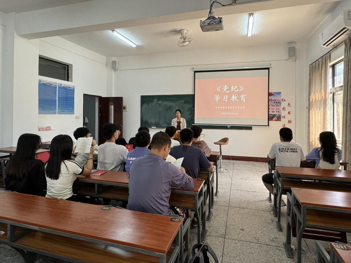 为深入学习贯彻习近平总书记关于党纪学习教育的重要讲话和重要指示精神,提升学生党员的纪律意识和政治觉悟,5月15日,电气工程系学生第二党支部于第一教学区祥贤教学楼204教室开展党纪学习教育活动。会议由支部书记陈慧敏主持。