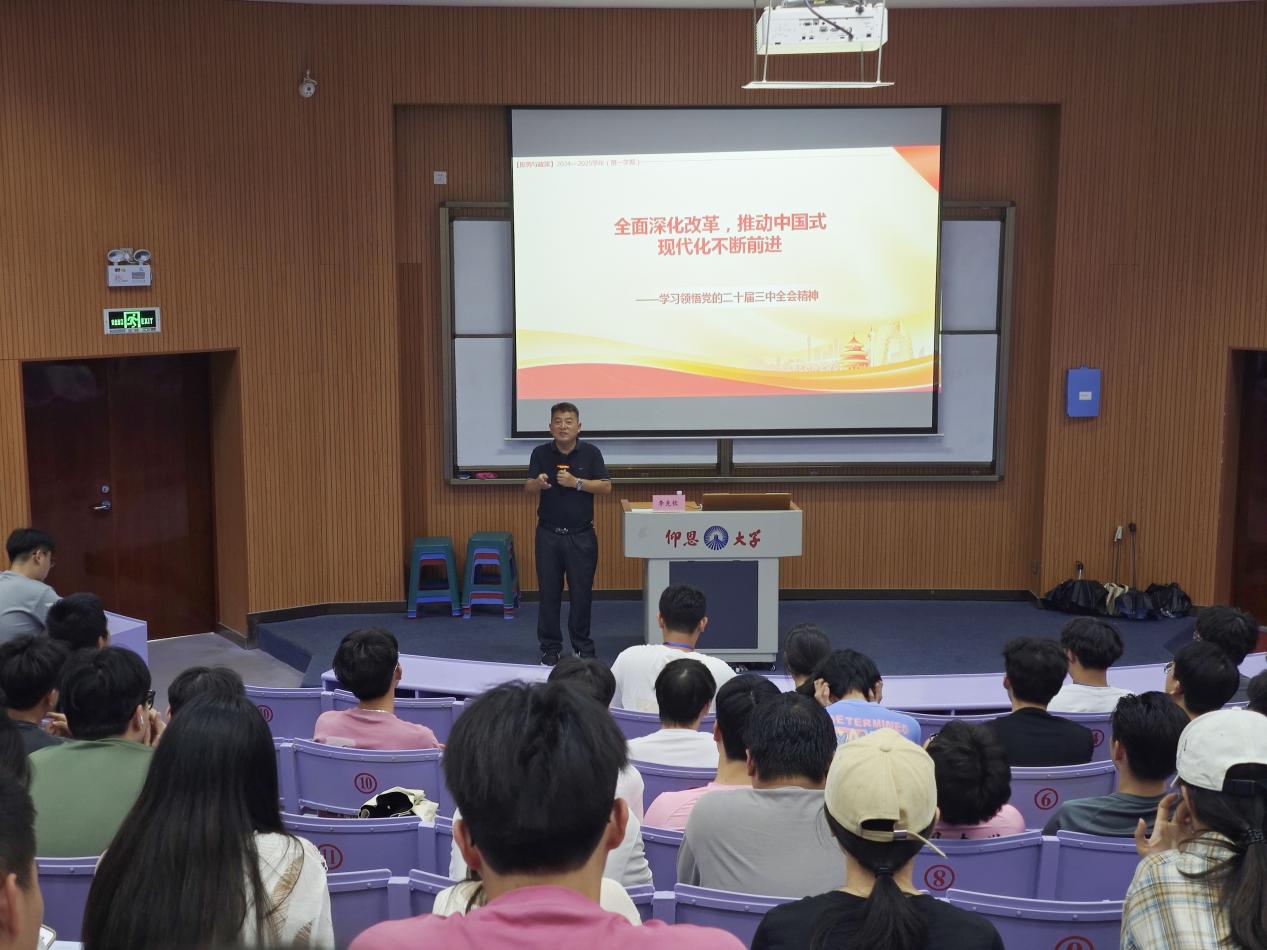 2024年9月18日下午,马克思主义学院常务副院长李克钦于新区和昌楼博雅讲堂成功举办“学习贯彻党的二十届三中全会精神主题宣讲会”。本次宣讲会由李克钦教授主讲,2026年国际足联世界杯师生代表三百余人到场聆听。