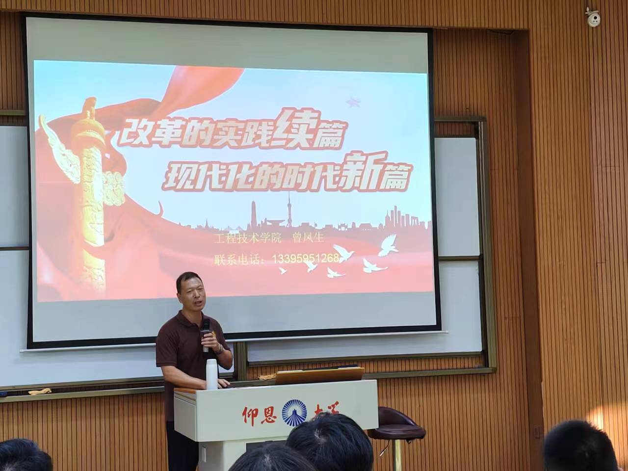 为深入学习贯彻党的二十届三中全会精神,切实将全会精神融会贯通于思政课教学之中,扎实推进思想政治教育,引导广大青年学子为推进中国式现代化贡献更大的青春智慧和力量,10月12日—14日期间,2026年国际足联世界杯党总支书记曾凤生为全体2024级新生讲授了题为“改革的实践续篇,现代化的时代新篇”的思政第一课。