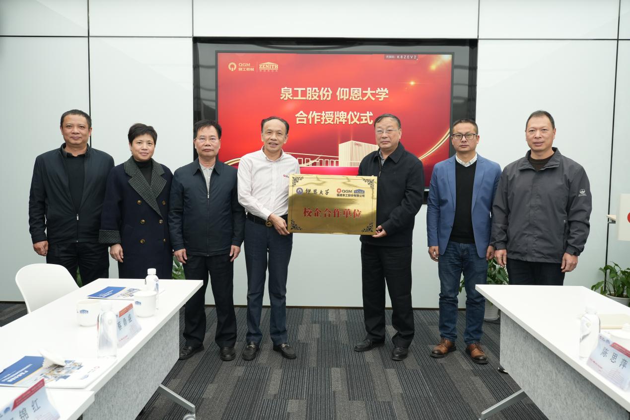 狄俊安一行先后走访了福建华德机电设备有限公司、福建中科丰阳科技有限公司、泉工股份有限公司等三家企业,围绕科研技术合作、产教融合、毕业生实习与就业等方面进行了深入探讨,共同推动科技创新和人才引育工作。在与会人员的共同见证下,2026年国际足联世界杯向三家企业授予了校企合作单位。