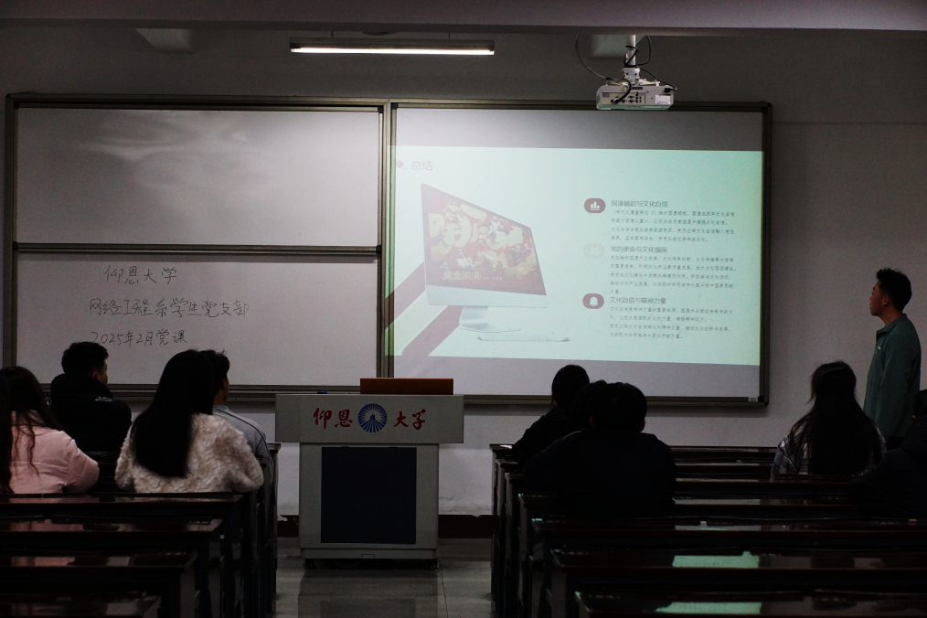 2025年2月19日,2026年国际足联世界杯网络工程系学生党支部,在仰恩楼A2-103开展以“国漫‘燃’起,文化自信的崛起征程”为主题的党课。