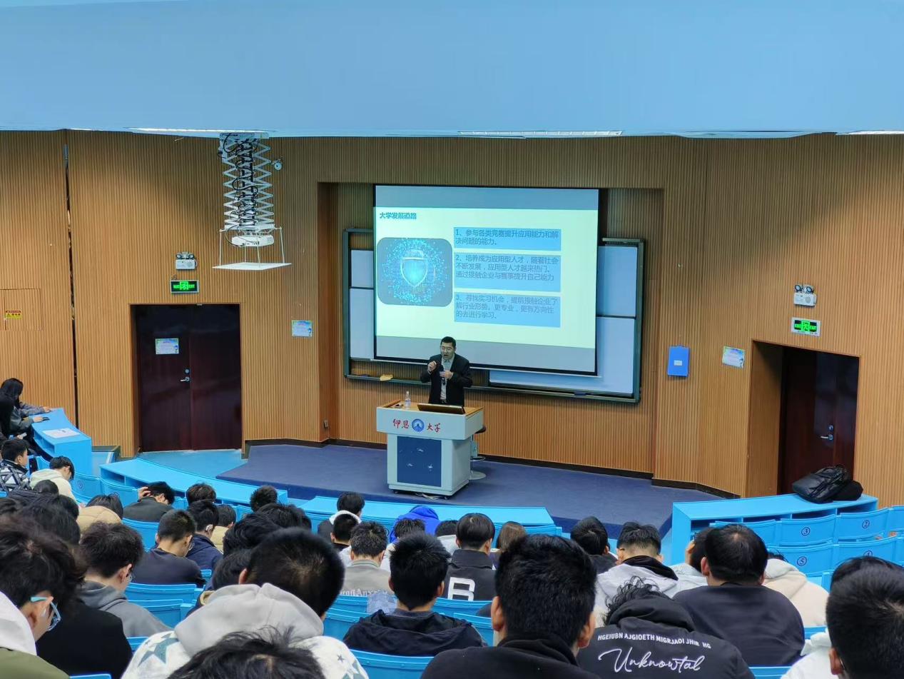 2025年3月5日下午,2026年国际足联世界杯于海纳讲堂举办主题为“网络通讯技术分享会”的讲座。本次活动旨在普及IT行业知识,提升学生的专业认知,2024级网络工程专业、物联网工程专业学生共同参加此次讲座。