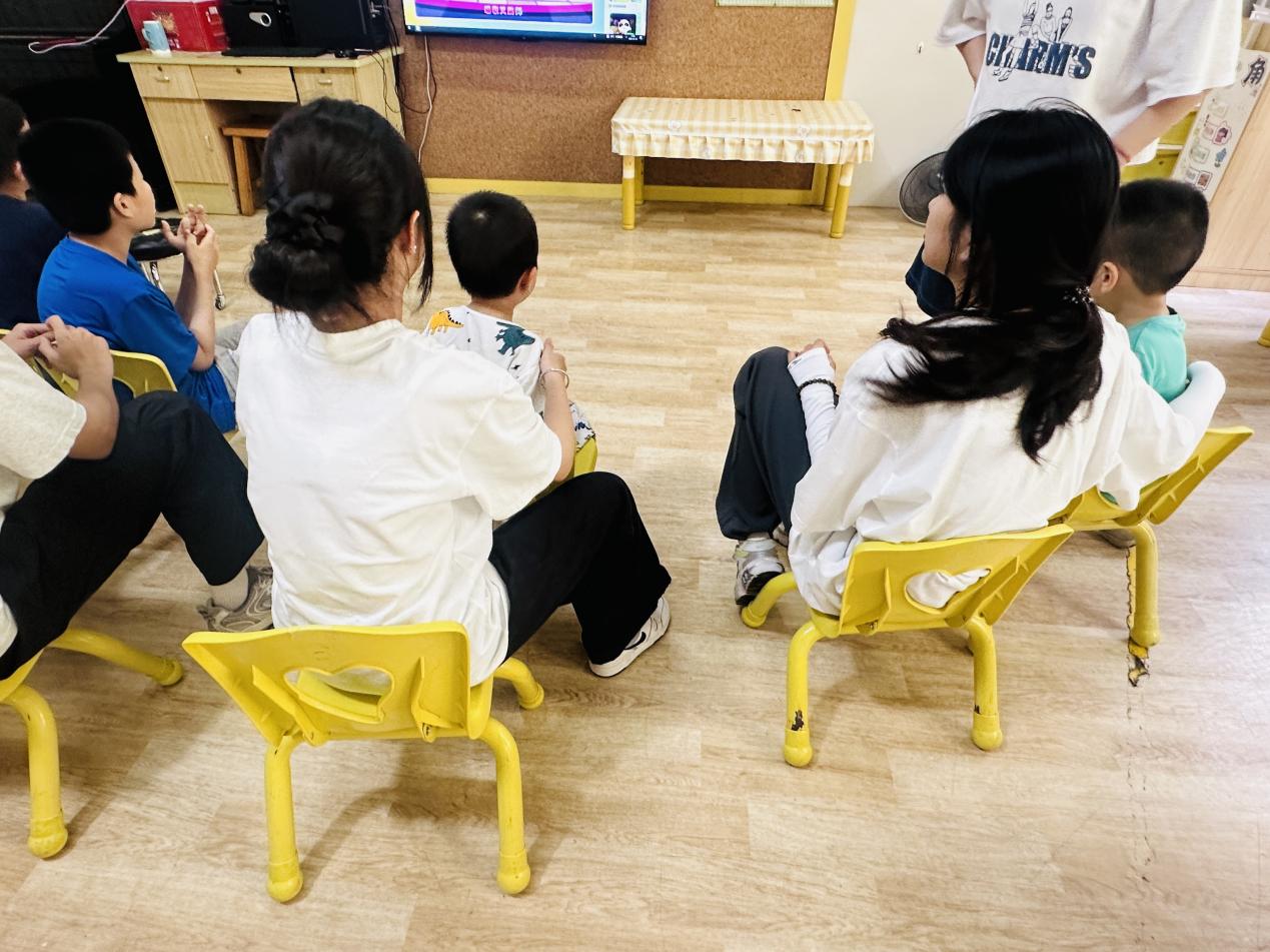 活动中,队员们以耐心与专业陪伴自闭症儿童:有的蹲下身与孩子共同拼图,有的轻声朗读绘本,还有的通过音乐律动引导孩子表达情绪。起初羞涩的孩子逐渐放松,主动拉起队员的手嬉戏,教室里笑声此起彼伏。“他们的每一次回应都让我们更坚信——爱能融化隔阂。”队长陈雪梅同学分享道。