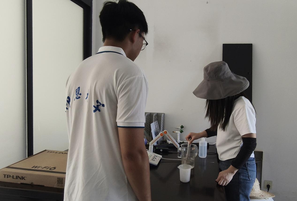 在技术人员的指导下,队员们严格按照规范操作流程,分层采集水样,精准检测pH值、溶解氧、浊度等8项关键指标。同步开展岸线巡查,详细记录沿岸植被生长状况和排水口运行情况,通过实践操作全面掌握水质监测的技术要点。