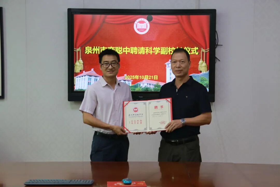 詹庆荣校长为曾凤生颁发科学副校长聘书