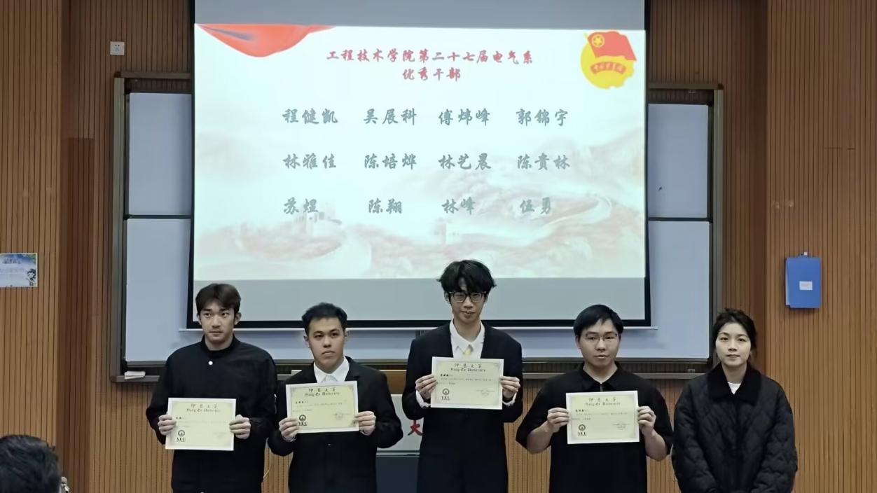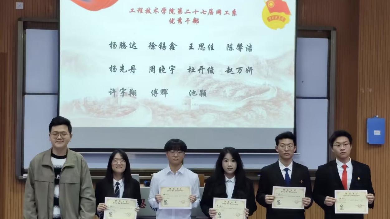 在表彰环节,学院团委老师为第二十七届书记团成员、院级优秀学生干部及干事颁发荣誉证书。