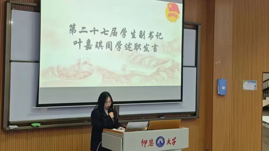 大会在庄严的团歌声中拉开序幕。第二十七届学生副书记叶嘉琪首先进行述职发言,全面回顾了过去一年团委在思想引领、组织建设、服务青年等方面的工作成果与成长感悟。