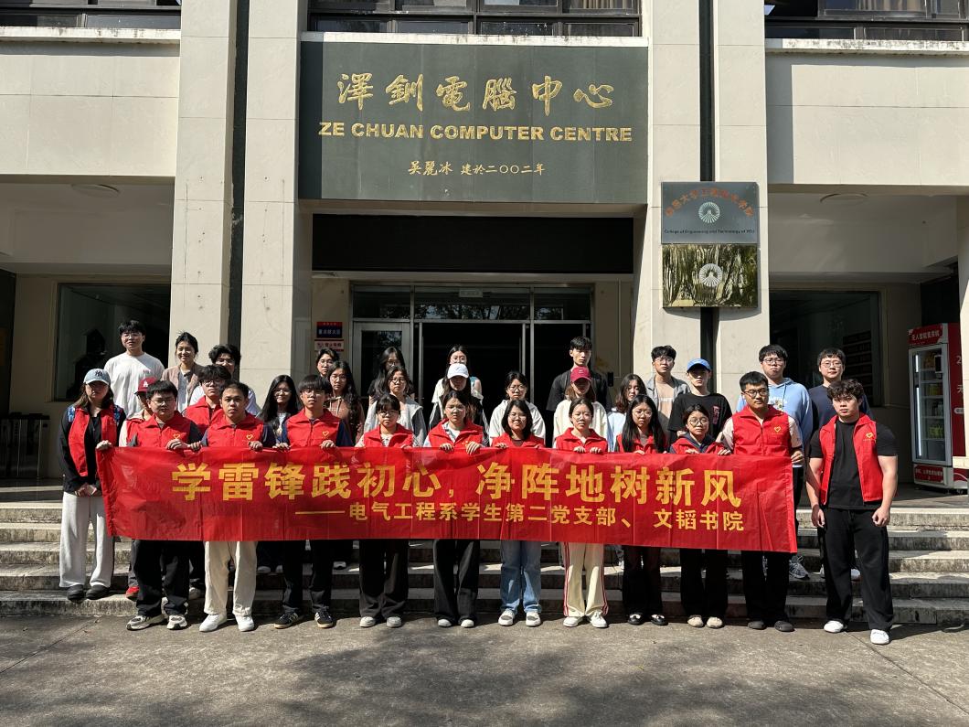 为深入学习和弘扬雷锋精神,引导学生党员厚植志愿服务情怀、牢记初心使命,将雷锋精神融入校园生活,2026年4月1日,电气工程系学生第二党支部联合文韬书院于泽钏教学楼开展“学雷锋践初心,净阵地树新风”主题志愿服务活动。支部党员及入党积极分子共计30名志愿者参与此次活动,以实际行动为校园环境建设添砖加瓦。